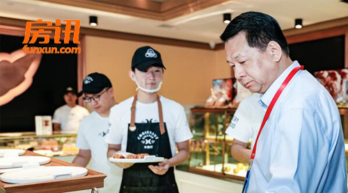 中糧集團(tuán)副總裁、中糧地產(chǎn)兼大悅城地產(chǎn)董事長(zhǎng)周政參觀商戶牛角村