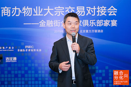全聯(lián)房地產(chǎn)商會(huì)副秘書(shū)長(zhǎng)兼房訊控股董事長(zhǎng)劉凱表示,對(duì)接會(huì)是全聯(lián)房地產(chǎn)商會(huì)和金融街企業(yè)家俱樂(lè)部是兩大平臺(tái)一次跨界合作的典范,"選址通"大宗物業(yè)交易平臺(tái),目標(biāo)聚合前100強(qiáng)房地產(chǎn)開(kāi)發(fā)商企業(yè)和項(xiàng)目,致力于提供平臺(tái)服務(wù)和優(yōu)秀項(xiàng)目,服務(wù)于國(guó)內(nèi)外企業(yè)、機(jī)構(gòu)、基金和投資者的商業(yè)地產(chǎn)大宗交易需求,也就是服務(wù)于在座的20位來(lái)自上市公司、金融機(jī)構(gòu)的高管朋友們。我們今天主要目的是交朋友,希望我們開(kāi)發(fā)商企業(yè)能夠和諸位上市公司、金融機(jī)構(gòu)的高管朋友們,在保持友誼的基礎(chǔ)上尋找雙方合作共贏的機(jī)會(huì)。