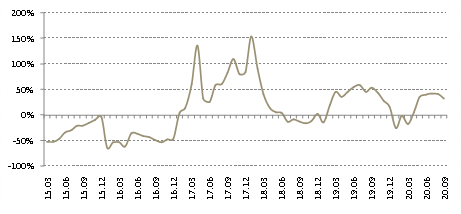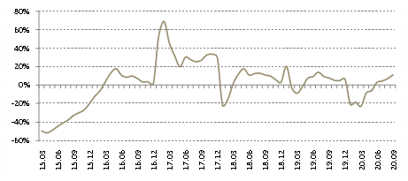 1-9月份,64個(gè)三四線城市居住用地成交面積為19676萬平方米,同比增長(zhǎng)20.8%。三四線城市的地市交易比預(yù)期的好,前9月增速是2019年2月份以來的最高水平。部分全國(guó)化布局的房企依然看好核心三四線城市,依然會(huì)加快拿地節(jié)奏。需要注意,10月份徐州、紹興等地加碼調(diào)控,房企拿地要防范政策收緊風(fēng)險(xiǎn)。