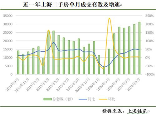 易居研究院數(shù)據(jù)顯示,9月上海二手住宅成交套數(shù)約為3.1萬套,環(huán)比增長4.2%,同比增長46.8%,處于2017年以來的歷史高位。