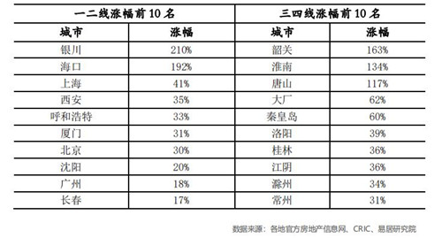 據(jù)悉,銀川在十一假期前已經(jīng)出臺了房地產(chǎn)新政,即“銀八條”,預(yù)計(jì)后續(xù)地價(jià)將進(jìn)一步趨穩(wěn)。而在全國 64 個三四線城市中,韶關(guān)、淮南和唐山的地價(jià)上漲幅度較大。除此之外,包括大廠、秦皇島、洛陽、桂林、江陰、滁州和常州的地價(jià)漲幅較大,均超過了 30%的水平。