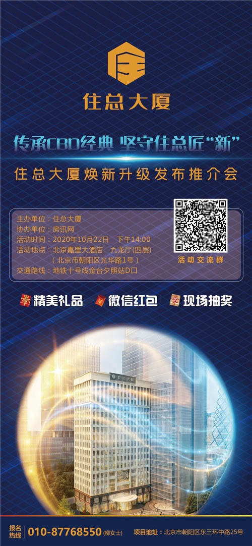 10月22日,住總大廈煥新升級推介發(fā)布會,聽業(yè)內(nèi)大咖解讀北京商辦市場新形勢,與嘉賓共鑒CBD區(qū)域辦公新地標(biāo),還有精美禮品、微信紅包、現(xiàn)場抽獎(jiǎng)等你而來,多重精彩,誠邀品鑒。
