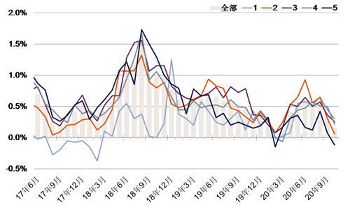 圖1:70個(gè)大中城市新建商品住宅銷售價(jià)格環(huán)比變動(dòng)情況