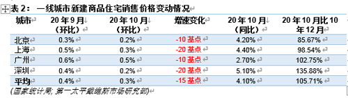 表2: 一線城市新建商品住宅銷售價(jià)格變動(dòng)情況