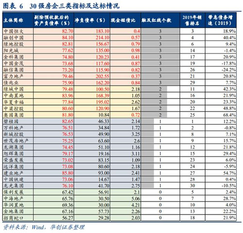 根據(jù)華創(chuàng)證券數(shù)據(jù),以2019年報(bào)數(shù)據(jù)為基礎(chǔ),綠地控股的凈負(fù)債率達(dá)到156%、剔除預(yù)收款后資產(chǎn)負(fù)債率達(dá)到82.8%,現(xiàn)金短債比為0.79,綠地等于全面踩中“三道紅線”,而且遠(yuǎn)超出閾值。