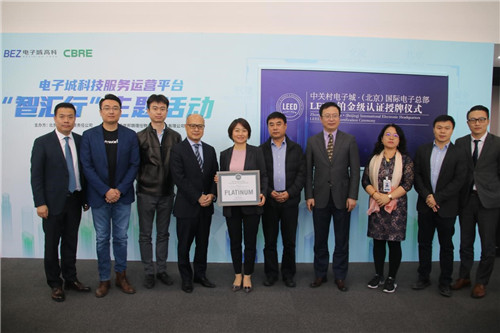2020年11月19日, "中關(guān)村電子城·(北京)國(guó)際電子總部項(xiàng)目LEED鉑金級(jí)認(rèn)證授牌儀式"在中關(guān)村電子城·(北京)國(guó)際電子總部圓滿舉行;顒(dòng)由美國(guó)綠色建筑委員會(huì)(USGBC)(以下簡(jiǎn)稱"綠建委")、CBRE世邦魏理仕、北京電子城有限責(zé)任公司聯(lián)合舉辦。