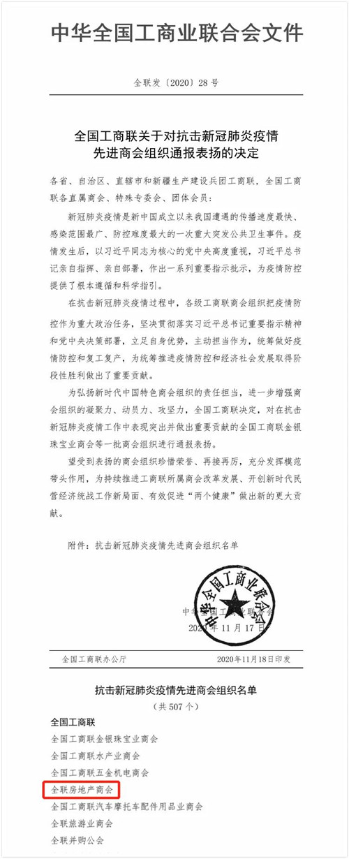 全聯(lián)房地產(chǎn)商會榜上有名!
