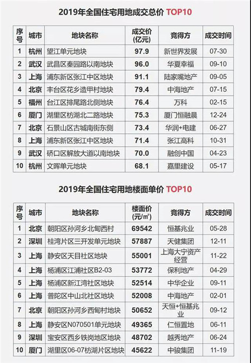 值得注意的是,2019年土地出讓金榜單排名前10的城市年度收金均突破千億元,總計(jì)成交16509億元,同比上升20.19%。其中杭州年度收金總額2765億元,連續(xù)兩年位列榜首。