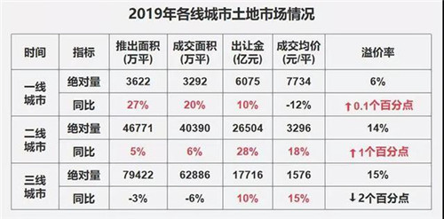 中指研究院數(shù)據(jù)顯示,2019年全國300個(gè)城市土地出讓總金額為50294億元,同比增長19%。