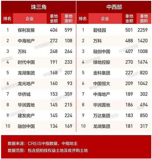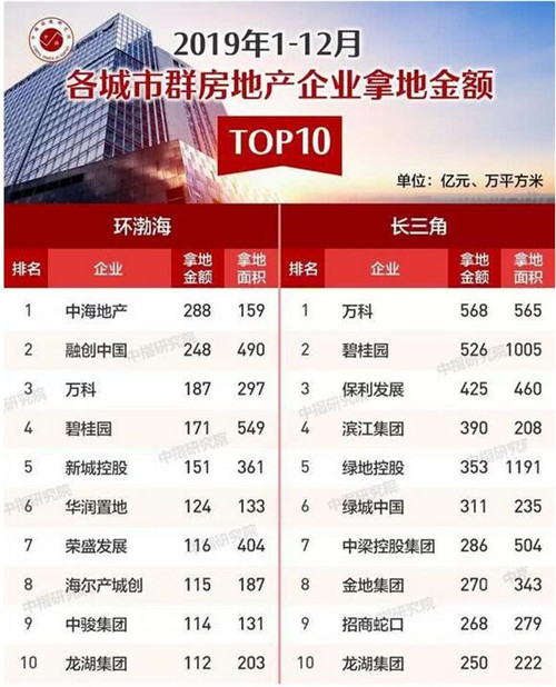 據(jù)中指研究院統(tǒng)計(jì),2019年,萬科、碧桂園、保利列房企拿地金額榜前三位,這也是這3家房企連續(xù)三年位列榜單前三。從拿地面積來看,位列前三的則是碧桂園、綠地和萬科。