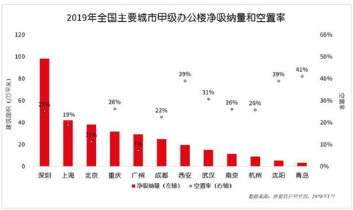 2019年全年甲級(jí)辦公樓凈吸納量約19.4萬平方米,較2018年峰值回落7.1%;與中國(guó)主要城市對(duì)比,西安甲級(jí)辦公樓凈吸納量位居全國(guó)第七位。