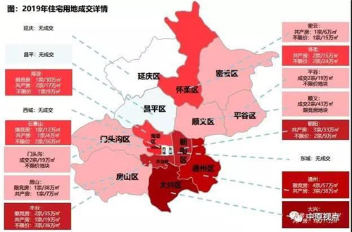 數(shù)據(jù)顯示,2019年北京限競房地塊供應16宗,供應面積253萬㎡,同比2018年下降46% ;共成交21宗,成交面積334萬㎡,同比下降33%,成交的限競房地塊主要分布在五六環(huán)之間;大興、通州等尤為密集。