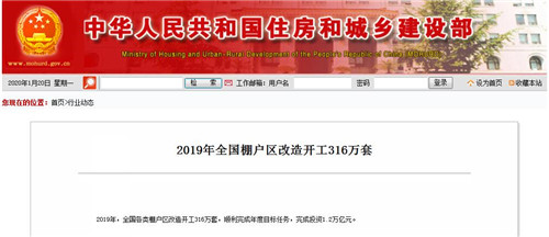 房訊網(wǎng)訊 據(jù)住建部官網(wǎng)消息,2019年,全國各類棚戶區(qū)改造開工316萬套,順利完成年度目標(biāo)任務(wù),完成投資1.2萬億元。