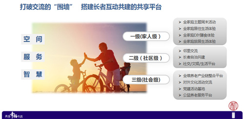 關(guān)于“創(chuàng)新養(yǎng)老社區(qū)”的營造,首創(chuàng)置業(yè)北京公司副總經(jīng)理兼遠(yuǎn)創(chuàng)椿和養(yǎng)老服務(wù)有限公司董事長周剛毅先生現(xiàn)場做了深入解讀,“為什么提出了共享這個概念,也就是三級共享社區(qū),說這個時候,我腦子經(jīng)常出現(xiàn)一個雞蛋,第一個層面,是蛋黃的部分,但不是老人暮氣沉沉的離開家園,而是跟家人有更好、更積極的健康環(huán)境的空間。第二個層面,是蛋清部分,高知高干高收入的人群,更多的是跟你同類的人在一起生活。第三個層面,是蛋殼,但不能只局限于產(chǎn)品的內(nèi)部的物理空間和服務(wù),通過首創(chuàng)和遠(yuǎn)洋兩大航母級集團,鏈接更多資源,讓老年人在這里進一步的成長!