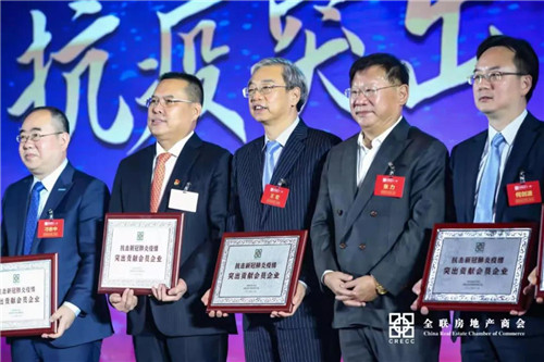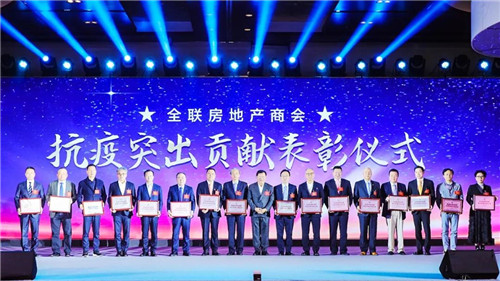 2020年12月13日,全聯(lián)房地產(chǎn)商會(huì)2020年會(huì)在北京富力萬(wàn)麗酒店舉行。為樹立榜樣、弘揚(yáng)先進(jìn),全聯(lián)房地產(chǎn)商會(huì)和黨建工委對(duì)富力集團(tuán)、恒大集團(tuán)、融創(chuàng)中國(guó)、陽(yáng)光城集團(tuán)、中建科工等100個(gè)抗疫突出貢獻(xiàn)企業(yè)給予表彰并授予“抗擊新冠肺炎疫情突出貢獻(xiàn)會(huì)員企業(yè)”榮譽(yù)稱號(hào),張力會(huì)長(zhǎng)代表商會(huì)向受表彰的代表企業(yè)的領(lǐng)導(dǎo)授牌。