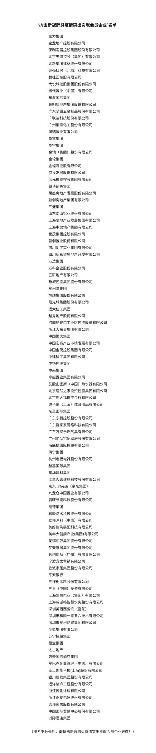 自新冠肺炎疫情發(fā)生以來(lái),全聯(lián)房地產(chǎn)商會(huì)廣大會(huì)員企業(yè)堅(jiān)決貫徹落實(shí)習(xí)近平總書記重要指示和黨中央決策部署,積極響應(yīng)商會(huì)倡議,立足本企業(yè)實(shí)際,快速響應(yīng)、積極參與、主動(dòng)作為,累計(jì)捐錢捐物價(jià)值16億元,為疫情防控做出了突出貢獻(xiàn),充分展現(xiàn)出會(huì)員企業(yè)愛黨愛國(guó)、勇于擔(dān)當(dāng)、樂于奉獻(xiàn)、忠誠(chéng)履行社會(huì)責(zé)任的家國(guó)情懷,涌現(xiàn)出了許多優(yōu)秀企業(yè)。