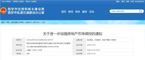 房訊網(wǎng)訊 12月1日,西安市住建局發(fā)布《關(guān)于進(jìn)一步加強(qiáng)房地產(chǎn)市場(chǎng)調(diào)控的通知》,深入貫徹落實(shí)“房子是用來(lái)住的、不是用來(lái)炒的”定位精神,保障支持自住需求,促進(jìn)房地產(chǎn)市場(chǎng)平穩(wěn)健康發(fā)展。