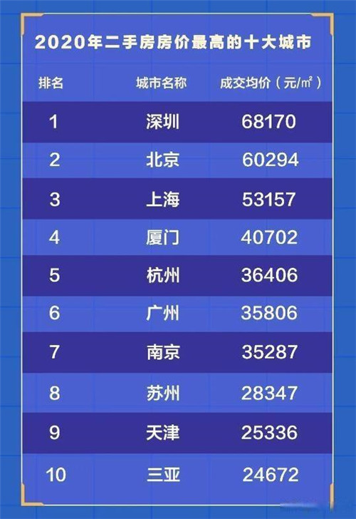 近日,貝殼研究院發(fā)布2020年二手房市場城市榜單,榜單顯示,2020年二手房房價最高的十大城市中,深圳繼續(xù)保持第一,北京、上海分列第二、第三;2020年二手房房價跌幅較大的十大城市中,廊坊跌8.4%居首,青島(跌3.8%)、濟南(跌3.4%)緊隨其后。
