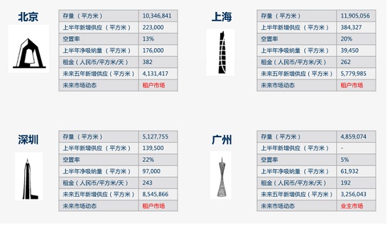 正是由于2019年部分城市寫字樓新供應(yīng)量增加、需求疲軟,相應(yīng)的空置率不斷攀升。據(jù)戴德梁行統(tǒng)計數(shù)據(jù)顯示,2019年上海、深圳、北京的甲級寫字樓空置率分別高達(dá)20%和22%、13%,創(chuàng)近年新高。預(yù)計,未來一線城市寫字樓市場供應(yīng)龐大,市場壓力巨大。