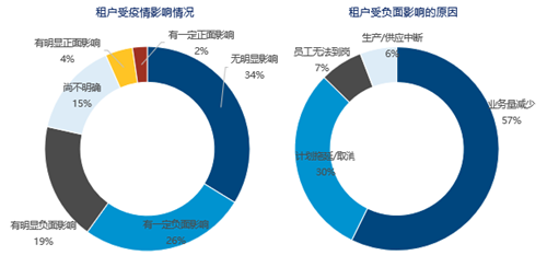 而在受訪的337位租戶中,有34%的受訪者認(rèn)為企業(yè)不會受到疫情的影響,26%的受訪者企業(yè)已經(jīng)受到明顯負(fù)面影響,19%的受訪者預(yù)計會對其業(yè)務(wù)造成一定損害。