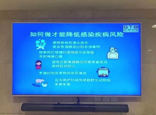 為更好的保證客戶安全,在電梯內、公共區(qū)域等多媒體上,及時跟進、宣傳防疫措施及注意事項,提醒員工及客戶做好防護,引導大家齊心協力,共戰(zhàn)“疫”情。