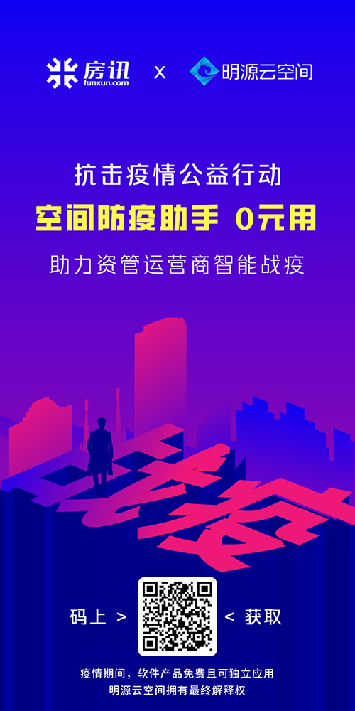 房訊網(wǎng)訊 新冠肺炎疫情影響下,線上辦公、智慧化辦公成為樓宇、企業(yè)的新趨勢(shì)。2月17日,房訊網(wǎng)聯(lián)合明源云空間進(jìn)行抗擊疫情公益行動(dòng),推出"空間防疫助手"平臺(tái),并承諾疫情期間軟件產(chǎn)品可免費(fèi)使用。助力商業(yè)地產(chǎn)領(lǐng)域資管運(yùn)營(yíng)機(jī)構(gòu)智能"戰(zhàn)疫",實(shí)現(xiàn)安全復(fù)工零接觸、防疫零風(fēng)險(xiǎn)。