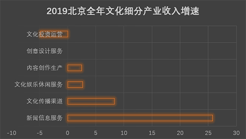 2019年全年,北京文化投資、創(chuàng)意設(shè)計(jì)、內(nèi)容生產(chǎn)等文化細(xì)分領(lǐng)域遭受行業(yè)寒冬,產(chǎn)業(yè)收入增速大幅下滑。尤其是聚焦于傳統(tǒng)影視、電視劇制作、傳統(tǒng)廣告的行業(yè)更會(huì)受到疫情的影響,制作發(fā)行公司項(xiàng)目延后上映會(huì)影響現(xiàn)金回流節(jié)奏,劇集和綜藝等制作公司項(xiàng)目拍攝時(shí)間延后也會(huì)后續(xù)產(chǎn)能釋放節(jié)奏產(chǎn)生影響。
