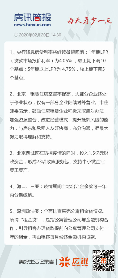1、央行降息房貸利率將繼續(xù)微幅回落:2月20日,全國銀行間同業(yè)拆借中心最新數(shù)據(jù)顯示:1年期LPR(貸款市場報價利率)為4.05% ,較上期下調(diào)10個基點;5年期以上LPR為 4.75%,較上期下調(diào)5個基點。