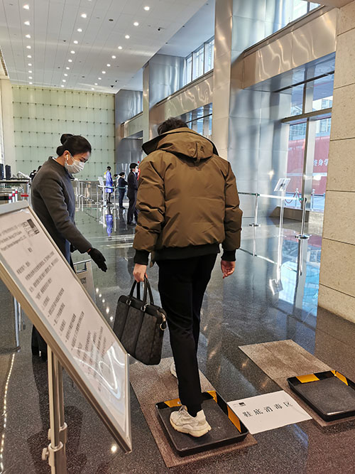 為消除各類傳播隱患,創(chuàng)新研發(fā)鞋底消毒形式,對(duì)每一位進(jìn)入大廈的人員進(jìn)行鞋底消毒。除此之外,物業(yè)還對(duì)車廠出入口鋪設(shè)消毒地毯,為進(jìn)入大廈的車輛進(jìn)行輪胎消毒,防微杜漸,攻克每一處傳染隱患。