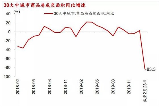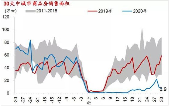 這主要是因為受疫情影響,1月26日中國房地產(chǎn)業(yè)協(xié)會發(fā)出倡議,號召房地產(chǎn)企業(yè)暫停售樓處銷售活動,疫情過后再行恢復(fù)。在此號召下,多地房地產(chǎn)業(yè)協(xié)會先后響應(yīng),發(fā)布公告暫停售樓處銷售活動。據(jù)不完全統(tǒng)計,截至1月末,已有60余個城市住建部門發(fā)布通知,要求暫停售樓處營銷活動。此外,部分地區(qū)甚至?xí)和7康禺a(chǎn)中介服務(wù)活動,例如門店暫停營業(yè)、不得組織現(xiàn)場看房等。在新冠疫情的沖擊下,這個新春的房地產(chǎn)銷售格外寂寥,特別是對三四線城市而言。