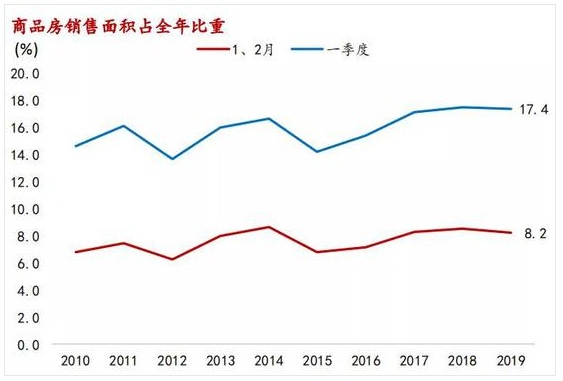 全年來看,新冠疫情對商品房銷售的影響或相對有限。新冠疫情爆發(fā)于1-2月商品房銷售的淡季,在疫情影響下,大多購房需求將會延后,因此疫情對商品房銷售的拖累主要體現(xiàn)在短期。一方面,1-2月商品房銷售面積在全年占比較少。從近5年數(shù)據(jù)來看,1-2月商品房銷售面積在全年占比平均為7.8%,而一季度商品房銷售面積在全年占比平均為16.3%。另一方面,若疫情過后經(jīng)濟(jì)如期反彈,市場主體信心快速恢復(fù),購房需求將在疫情過后延遲釋放。