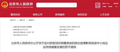 房訊網(wǎng)訊 2月5日,為深入貫徹落實黨中央、國務院關(guān)于新型冠狀病毒感染的肺炎疫情防控工作部署,切實減輕疫情對中小微企業(yè)生產(chǎn)經(jīng)營影響,幫助企業(yè)共渡難關(guān)和穩(wěn)定發(fā)展,北京市人民政府辦公廳發(fā)布關(guān)于應對新型冠狀病毒感染的肺炎疫情影響促進中小微企業(yè)持續(xù)健康發(fā)展的若干措施。