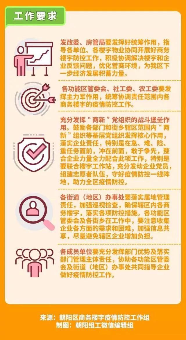 3.區(qū)衛(wèi)健委、區(qū)商務(wù)局、市規(guī)自委朝陽分局、區(qū)市場(chǎng)監(jiān)管局、區(qū)國(guó)資委要充分發(fā)揮各單位職能和職責(zé),相互協(xié)調(diào)配合,全面落實(shí)好區(qū)商務(wù)樓宇疫情防控工作組的工作要求,做好商務(wù)樓宇的疫情防控工作。