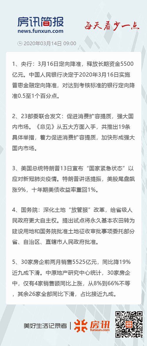 房訊簡報:央行決定16日定向降準,釋放長期資金5500億元