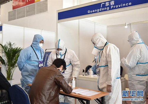 入境人員在離開機場海關前要進行健康申報及體溫篩查,進入新國展集散地前要再進行體溫篩查。在新國展內,駐地醫(yī)療點負責對各工作團隊及入境人員發(fā)熱、咳嗽等健康異常情況進行排查及應急處置。