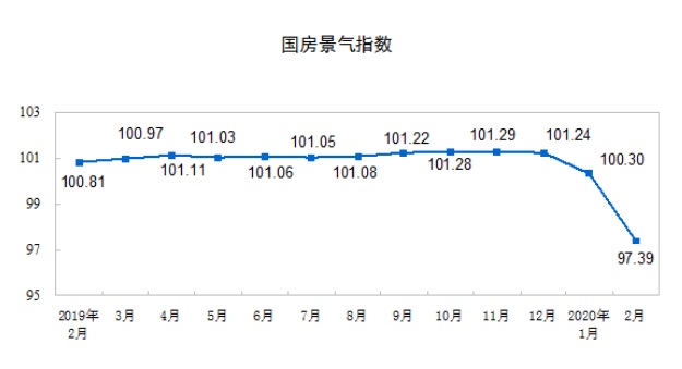 2月份,房地產(chǎn)開發(fā)景氣指數(shù)(簡(jiǎn)稱“國(guó)房景氣指數(shù)”)為97.39。