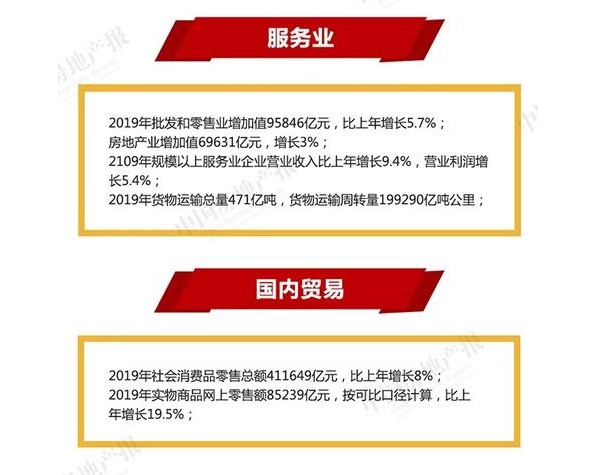服務(wù)業(yè)方面,2019年全年房地產(chǎn)業(yè)增加值69631億元,增長3%;另外,住宿和餐飲業(yè)增加值18040億元,增長6.3%;金融業(yè)增加值77077億元,增長7.2%;租賃和商務(wù)服務(wù)業(yè)增加值32933億元,增長8.7%。