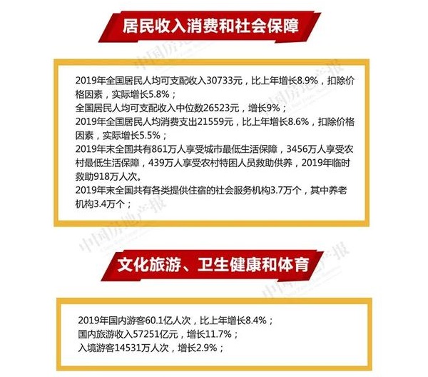 與此同時,社會保障體系繼續(xù)完善。包括2019年全國各類棚戶區(qū)改造開工316萬套,全國共有醫(yī)療衛(wèi)生機構(gòu)101.4萬個等,標(biāo)志著社會事業(yè)進步。