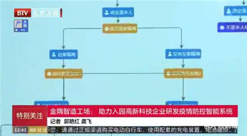 2020年3月19日,BTV北京衛(wèi)視《特別關注》節(jié)目就關于“金隅智造工場助力入園高新科技企業(yè)研發(fā)疫情防控智能系統(tǒng)”進行了專題報道。