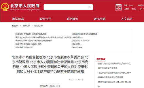 房訊網(wǎng)訊 3月25日,北京市市場監(jiān)管局、市發(fā)改委、市財政局、市人力社保局、市商務(wù)局、人民銀行營管部等六部門聯(lián)合印發(fā)《關(guān)于應(yīng)對疫情影響加大對個體工商戶扶持力度的若干措施》,多項(xiàng)舉措扶持個體工商戶。