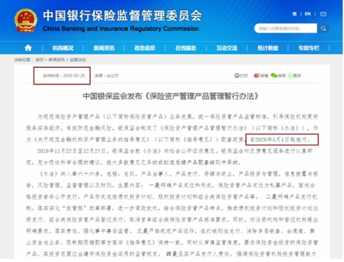 《保險資產(chǎn)管理產(chǎn)品管理暫行辦法》已于2019年7月19日經(jīng)中國銀保監(jiān)會2019年第6次委務(wù)會議通過,F(xiàn)予公布,自2020年5月1日起施行。