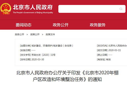 北京市人民政府辦公廳關(guān)于印發(fā)《北京市2020年棚戶區(qū)改造和環(huán)境整治任務(wù)》的通知