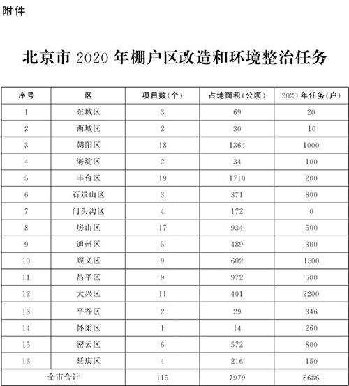 附件:北京市2020年棚戶區(qū)改造和環(huán)境整治任務(wù)