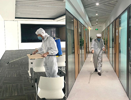中糧創(chuàng)芯研發(fā)中心(深圳)每日定時進行四次消毒,針對公共區(qū)域、公共設(shè)施進行全方位清潔消毒,并加強消殺的頻次與力度;嚴控措施落實到各細節(jié)處,電梯間按鍵、大堂休息區(qū)座椅等都進行全面消毒,確保從細節(jié)處落實防范。