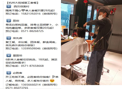 杭州大悅城(杭州)盡管購物中心疫情期間暫時整體停業(yè),但考慮到復工企業(yè)日常辦公需求,運營部與購物中心部分餐飲商戶溝通為寫字樓復工企業(yè)推出超值工作餐,包括西貝、廚創(chuàng)、榮先生、天辣、星巴克、奈雪等。2月25日、26日為樓內(nèi)復工企業(yè)提供苑苑、杜尚的優(yōu)惠理發(fā)套餐。租賃組配合運營部提供暖心服務(wù),協(xié)調(diào)優(yōu)惠券、統(tǒng)計套餐的預定等,復工企業(yè)順利解決了員工的后顧之憂,充分體會到了央企的人性化關(guān)懷。