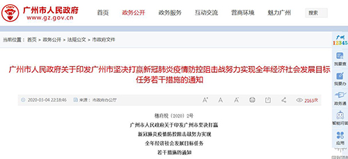 房訊網(wǎng)訊 5日,廣州市人民政府官方網(wǎng)站再次上線《關于印發(fā)廣州市堅決打贏新冠肺炎疫情防控阻擊戰(zhàn)努力實現(xiàn)全年經(jīng)濟社會發(fā)展目標任務若干措施的通知》,與此前3月3號所發(fā)布的《通知》相比,具體措施內(nèi)容有所調(diào)整。