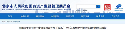 市國(guó)資委關(guān)于進(jìn)一步落實(shí)京政辦發(fā)〔2020〕7號(hào)文 減免中小微企業(yè)房租的補(bǔ)充通知
