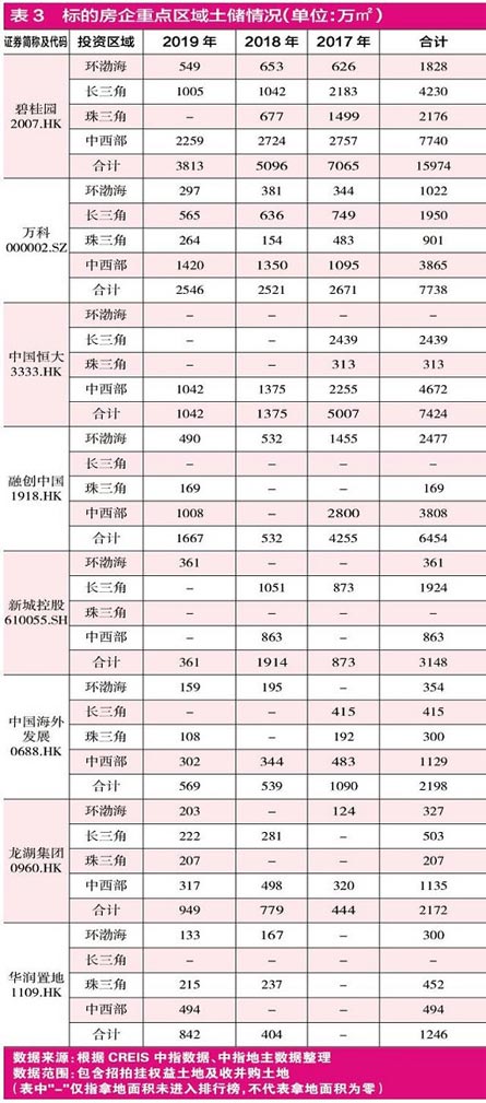 而從標(biāo)的房企在長(zhǎng)三角、珠三角、環(huán)渤海、中西部等重點(diǎn)區(qū)域的土儲(chǔ)布局(見表3)來(lái)看,除了“碧萬(wàn)恒融”重倉(cāng)上述核心城市群之外,新城控股、中海地產(chǎn)、華潤(rùn)置地、龍湖集團(tuán)在上述重點(diǎn)區(qū)域的土儲(chǔ)規(guī)模也較大。優(yōu)質(zhì)的土儲(chǔ)布局,為上述房企日后的銷售業(yè)績(jī)奠定了豐厚的基礎(chǔ)。
