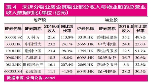 《紅周刊》記者對(duì)比物業(yè)股與上述房企物業(yè)管理業(yè)務(wù)的收入及同比增速發(fā)現(xiàn),物業(yè)股2019年半年度的平均總營(yíng)業(yè)收入約為16.6億元,平均同比增長(zhǎng)率約為45.6%。在未拆分物業(yè)上市的主流房企中,萬(wàn)科、恒大、融創(chuàng)的物業(yè)管理營(yíng)收規(guī)模均超過20億元,此外龍湖集團(tuán)物業(yè)管理收入也以18.3億元的規(guī)模超過物業(yè)股平均水平。在同比增長(zhǎng)率方面,世茂房地產(chǎn)的物業(yè)管理收入以207.40%的增長(zhǎng)率居首位,萬(wàn)科物業(yè)、融創(chuàng)物業(yè)的營(yíng)收同比增長(zhǎng)率高達(dá)約100%,龍湖物業(yè)也以48.78%的增長(zhǎng)率高于物業(yè)股平均水平。
