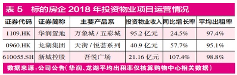 《紅周刊》梳理標(biāo)的房企財(cái)務(wù)數(shù)據(jù)發(fā)現(xiàn)(見表5),在投資物業(yè)擁有特色I(xiàn)P的房企中,華潤(rùn)置地、龍湖集團(tuán)、新城控股表現(xiàn)亮眼。其中,華潤(rùn)置地的投資物業(yè)收入規(guī)模最高,2018年和2019年上半年分別達(dá)到95.2億元和57億元,較去年同期增長(zhǎng)24.5%和30.4%。在華潤(rùn)上述收入規(guī)模中占比最大的購(gòu)物中心各產(chǎn)品系,在2018年的平均出租率高達(dá)97.4%。